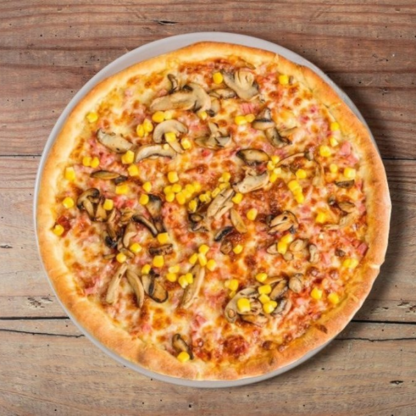 pizzaszósz, sonka, gomba, kukorica, trappista sajt - 26 cm